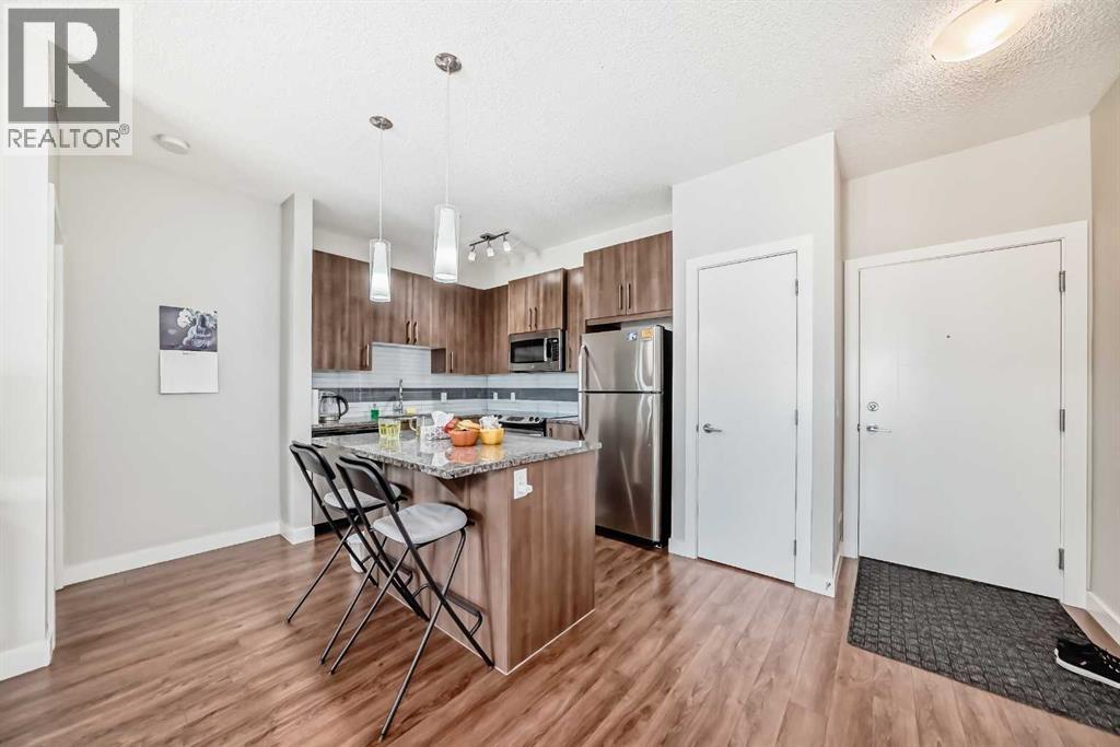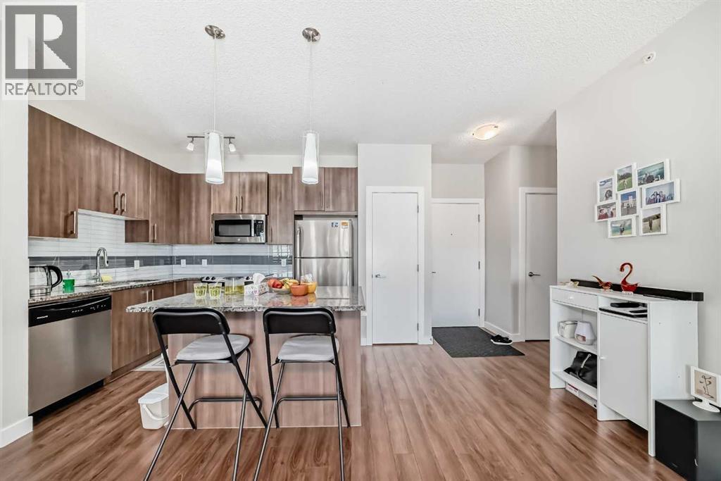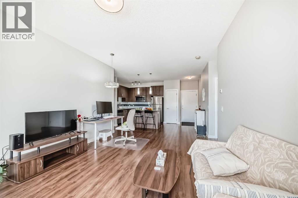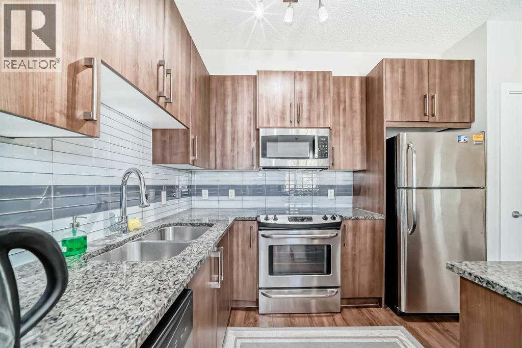 Price Reduced! Top-Floor 2 Bed 2 Bath + Den Condo with Central A/C in Sage Hill NW. Spacious and private top-floor unit with no neighbors above, located in the heart of Sage Hill NW. This 2-bedroom + den, 2-bathroom condo offers an open floor plan with 9-foot ceilings, quartz countertops, stainless steel appliances, and a large pantry in the kitchen. The primary bedroom includes a walk-in closet and full ensuite. The second bedroom is generously sized and is complemented by another full bathroom. A separate den provides flexible space for a home office or additional living area. Enjoy comfort year-round with central air conditioning and a private, good-sized patio—ideal for outdoor relaxation. Titled heated underground parking stall is conveniently located right in front of the elevator for easy access. Residents also have access to a recreation room in the building. Excellent location within walking distance to Creekside Shopping Centre, Walmart, Costco, T&T Supermarket, restaurants, and more. Quick access to Stoney Trail provides easy connectivity throughout the city. (id:6365)