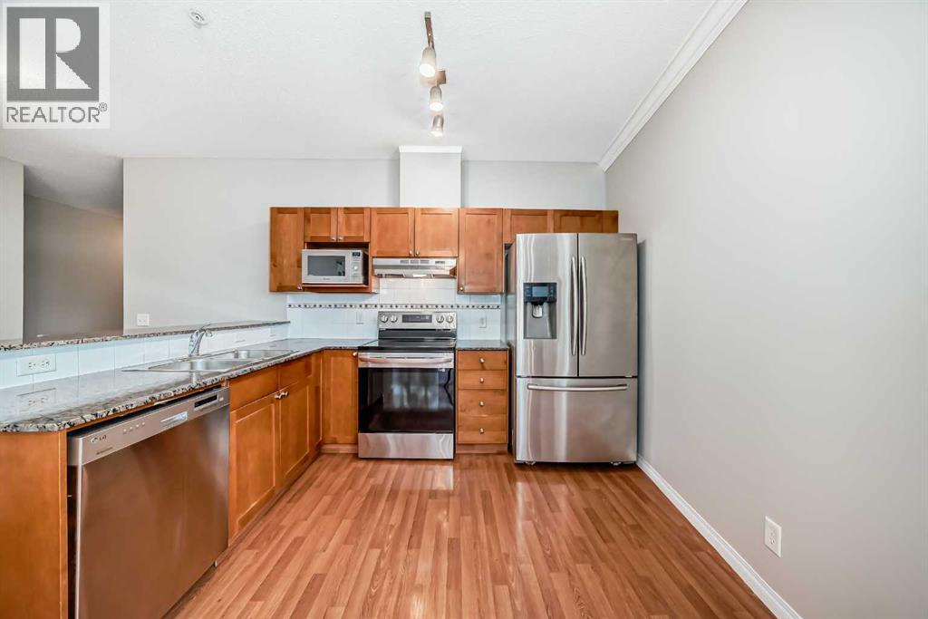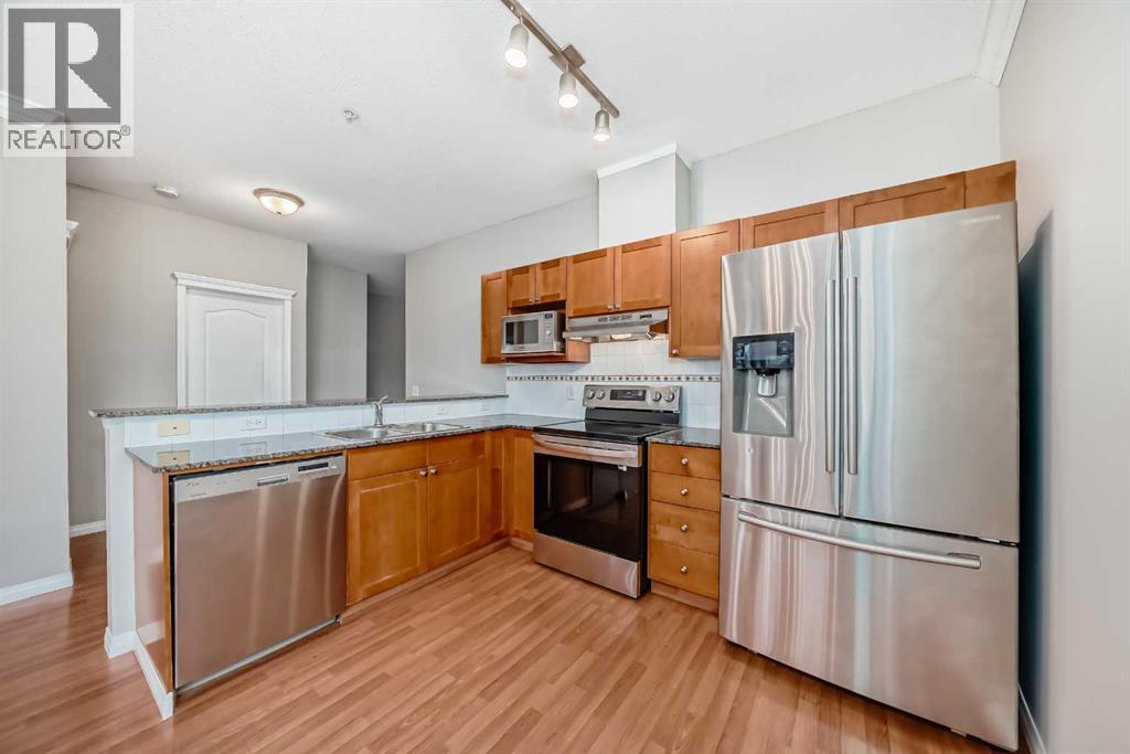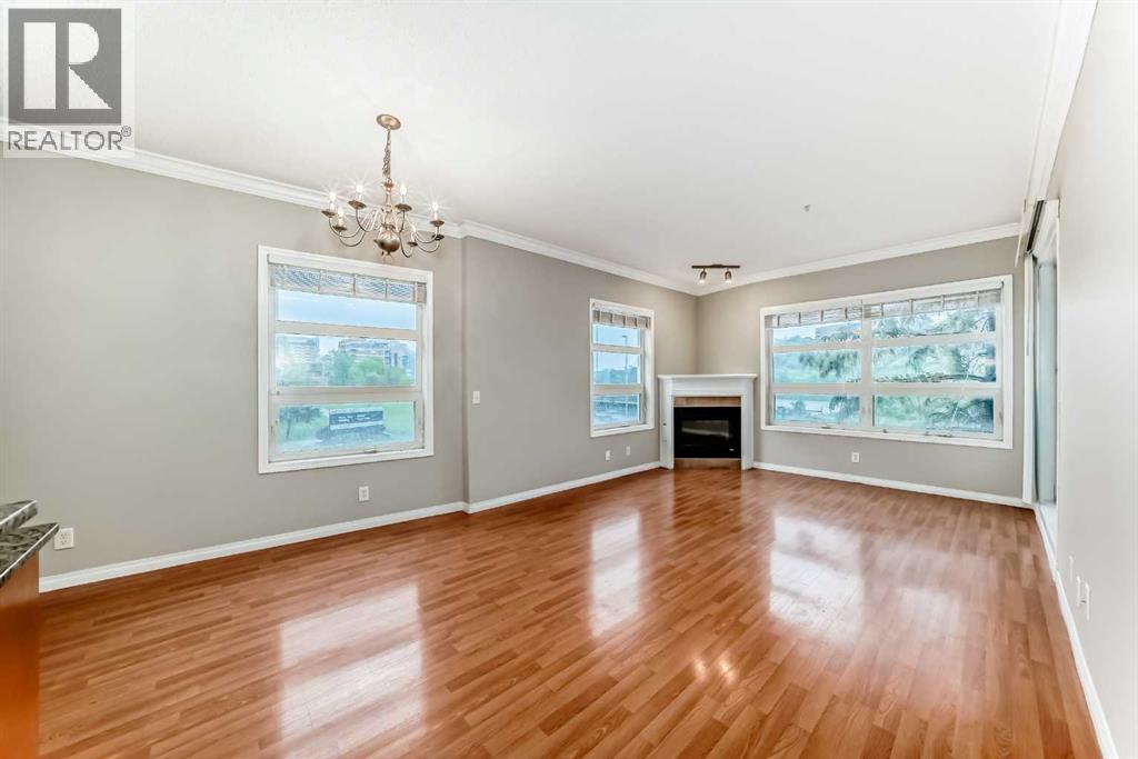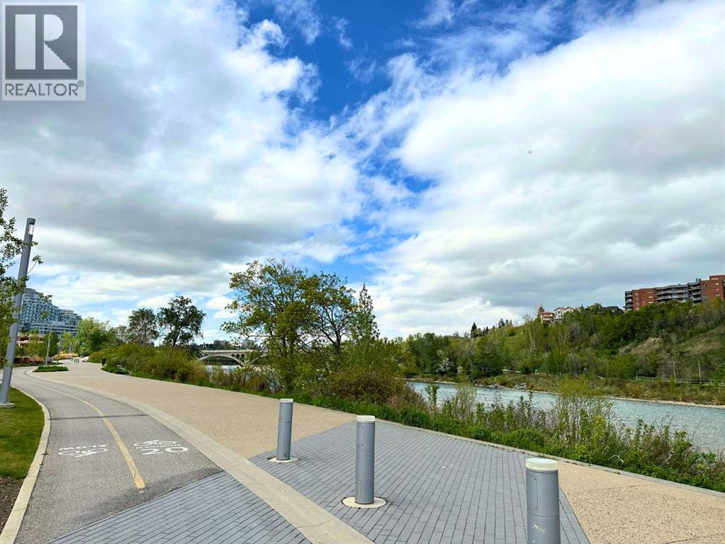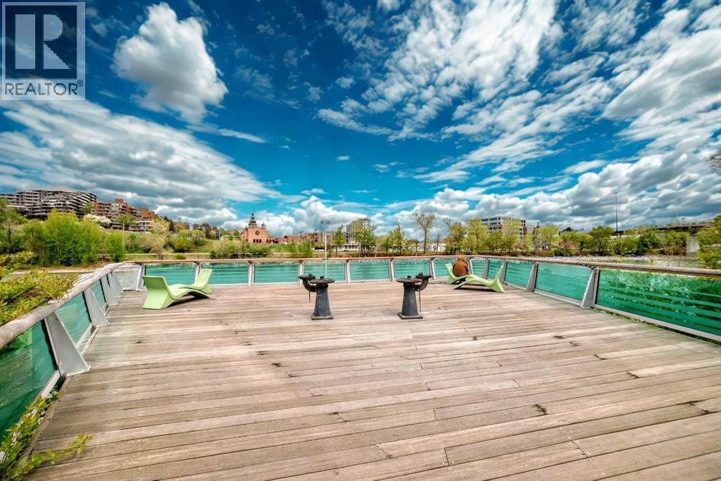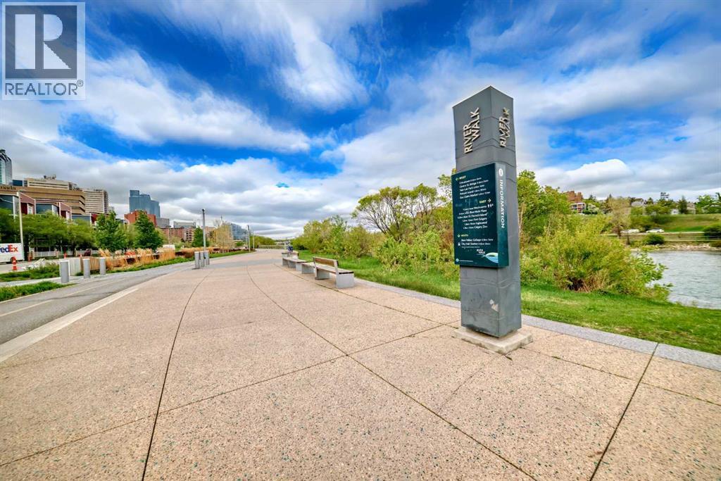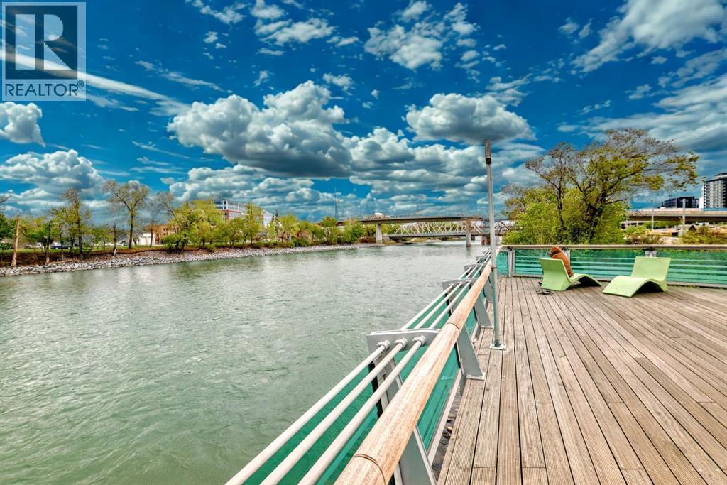 Magnificent RIVERFRONT 9' Ceiling CORNER UNIT in heart of downtown access to +15. NEW Carpet & Paint ---- Amazing downtown riverfront 2 bed / 2 bath condo in prime location. This large corner unit has unobstructed views of the Bow River. Lots of natural sunlight combined with magnificent sunrise and sunset views of the bow river / center street bridge. Enjoy the open kitchen with fridge, stove, microwave, dishwasher with lots of cabinet space and granite countertops. Additional unit features include 9ft ceilings, secure underground parking, storage locker (available for rent), secure bicycle storage, in-floor heating, in-suite laundry, covered deck and a beautiful fireplace.The +15 located across the street provides quick access to work, restaurants, clubs, shopping and recreation. The area is walking distance to restaurants, night life, great food, multiple LRT Stations, Central Public Library, Prince’s Island Park, Chinatown and of course downtown offices. The upgraded river walk right in front of the building and is perfect for walking, jogging or biking. (id:6365)