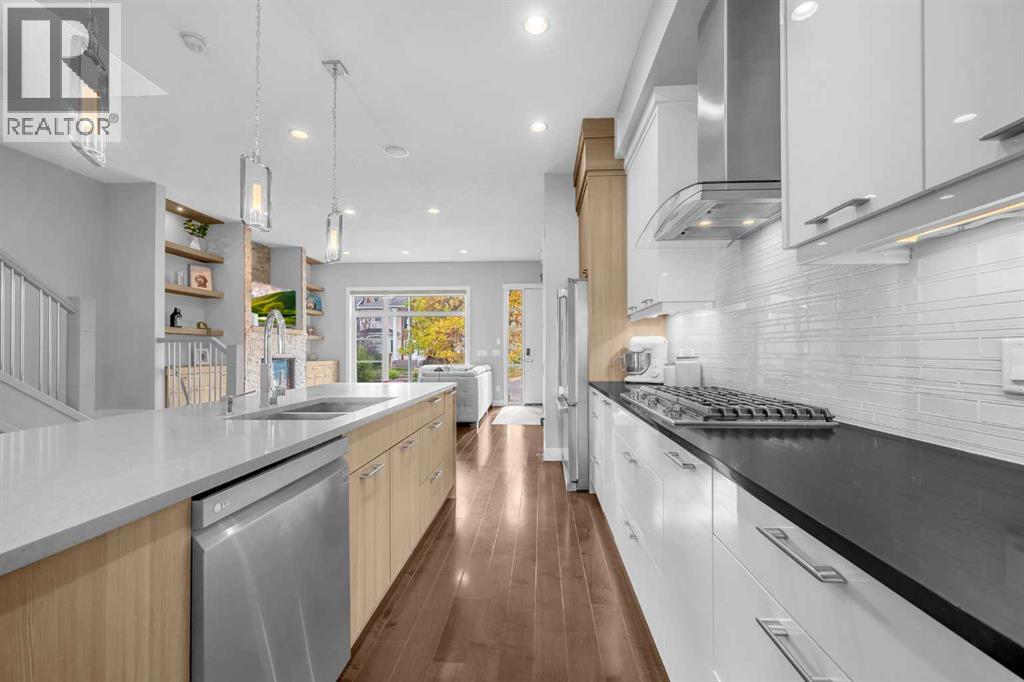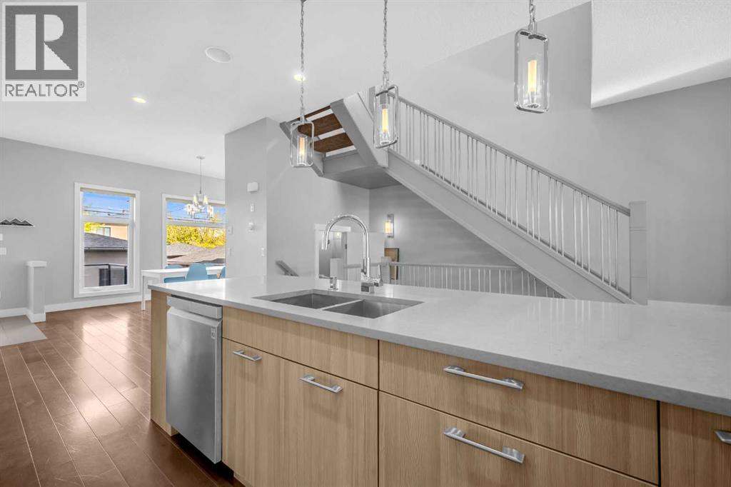 Welcome to this beautifully designed and extensively upgraded home in the highly desirable inner-city community of Mount Pleasant. Boasting over 2,800 sqft, this home stands out with architectural detail and premium finishes not found in typical infills. The main floor is a showstopper, featuring soaring ceilings, rich hardwood floors, and an inspired open-concept layout. The chef’s kitchen is anchored by an oversized quartz-covered island and features a gas cooktop, stainless steel appliance package, abundant cabinetry, and designer lighting — ideal for both daily living and entertaining. Sunlight pours into the south-facing living room, where an impressive feature wall with a fireplace and custom built-in units create a warm, inviting focal point. A spacious dining area connects seamlessly, offering plenty of room to host gatherings with friends and family. A striking open-tread staircase leads to the upper level, where the luxurious primary suite feels like a private retreat. Vaulted ceilings add an airy sophistication, while the spa-inspired ensuite offers dual vanities, a deep jetted tub, and a massive walk-in shower. Two more spacious bedrooms and a convenient upper laundry room complete the upstairs. The fully finished basement is designed for entertainment and comfort, featuring a large family/media room with a custom wet bar, perfect for movie nights or hosting game day. A fourth bedroom and a full bathroom make this level ideal for guests, teenagers, or a private home office. Outdoors, the low-maintenance backyard is an oasis — enjoy grilling on the large deck with patio space for all your outdoor furniture. A double detached garage offers secure parking and storage and the property’s curb appeal is undeniable. Situated on a lower-traffic street, this home is close to excellent schools, Confederation Park and the Mount Pleasant Community Center. You will love the quick access to downtown, shopping, restaurants, and transit. If you are searching for a truly special inner-city property that combines thoughtful design, exceptional craftsmanship, and an unbeatable location, this home belongs at the top of your must-see list. (id:6365)