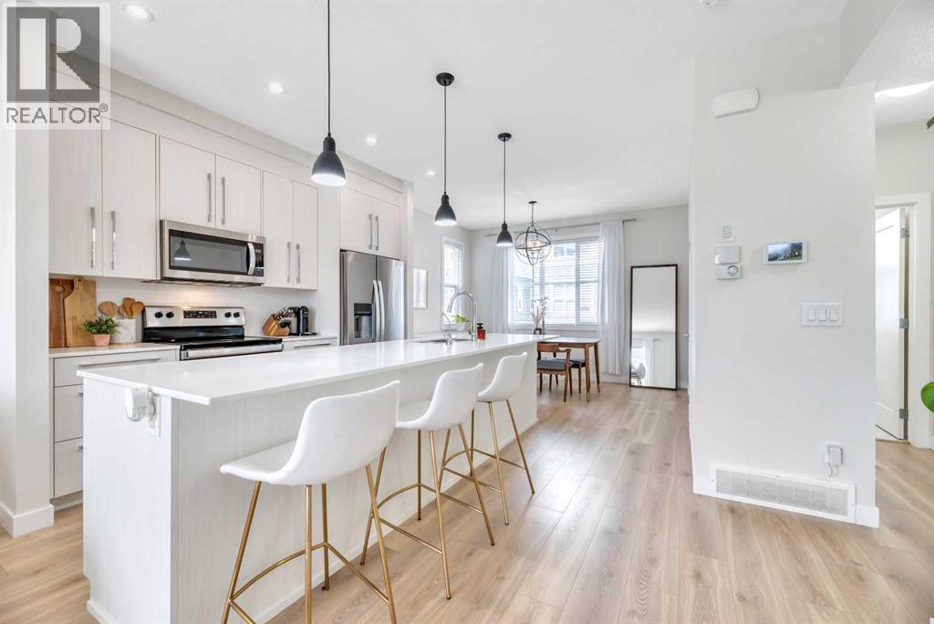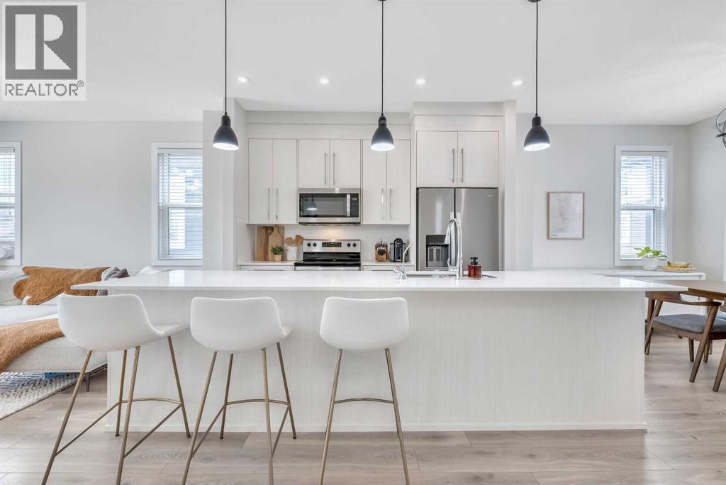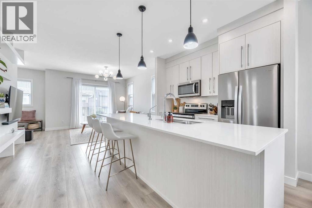 Welcome to this stunning 3 BEDROOM 2.5 BATH CORNER END UNIT Townhouse, which comes with a HUGE HEATED DOUBLE ATTACHED GARAGE and a SOUTH-FACING balcony!!! Upon entry, you will be greeted by an entryway leading to a spacious bedroom, a mudroom closet, and the double attached garage-where you can find the utility room. The second floor offers a great open-concept floor plan that includes the dining area, kitchen, living area, corner office space, a half bath, and the balcony. The kitchen is equipped with stainless steel appliances, quartz countertops, a long kitchen island, and a well-sized pantry. The top floor boasts TWO LARGE AND COZY MASTER BEDROOMS WITH EACH ROOM HAVING ITS OWN WALK-IN CLOSET AND ITS OWN ENSUITE BATHROOM!!! The washer and dryer is also located on the top floor for added convenience. Since this is a corner end unit, you will have the luxury of having extra windows that allow ample amount of outdoor light indoors-making this home bright and airy. In the balcony, you will find a gas line for your barbecue grill as an added bonus. There is plenty of street parking for your guests just steps away from this home's front door, as well as a number of free visitor's parking when you drive inside the complex. This home is close to bus stops, schools, parks, restaurants, and Shopping Centres; as well as it offers easy access to Stoney Trail for fast and easy commute. Don't miss the opportunity to make this beautiful home yours!!! (id:6365)
