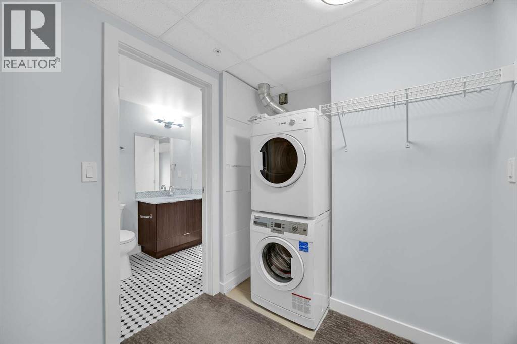 Set high on the 11th floor of Vogue, this refined 1 bedroom + den /1 bathroom residence offers an exceptional downtown living experience with contemporary finishes. The OPEN-CONCEPT LAYOUT showcases a sleek modern kitchen with quartz countertops, generous cabinetry and stainless-steel appliances, seamlessly connecting to a bright living space finished with HARDWOOD FLOORING—ideal for both relaxed living and elegant entertaining. The SEPARATE DEN provides a versatile space for a home office or additional storage, while the SPACIOUS BEDROOM comfortably accommodates a queen or king-sized bed and features a WALK-THROUGH CLOSET leading to the ensuite bathroom. Additional highlights include AIR CONDITIONING, a private balcony, a secured underground PARKING STALL and a STORAGE LOCKER. Access to PREMIUM AMENITIES including a rooftop fitness centre, owner’s lounge, games room, professional boardroom, SECURE VISITOR PARKING and full concierge service. Located in the heart of downtown, this suite offers EXCEPTIONAL WALKABILITY with immediate access to the Bow River pathways, Prince’s Island Park, the C-Train and Calgary’s +15 network.. A fantastic opportunity for individuals, couples, or investors seeking quality, convenience and the welcoming spirit of a vibrant community! (id:6365)