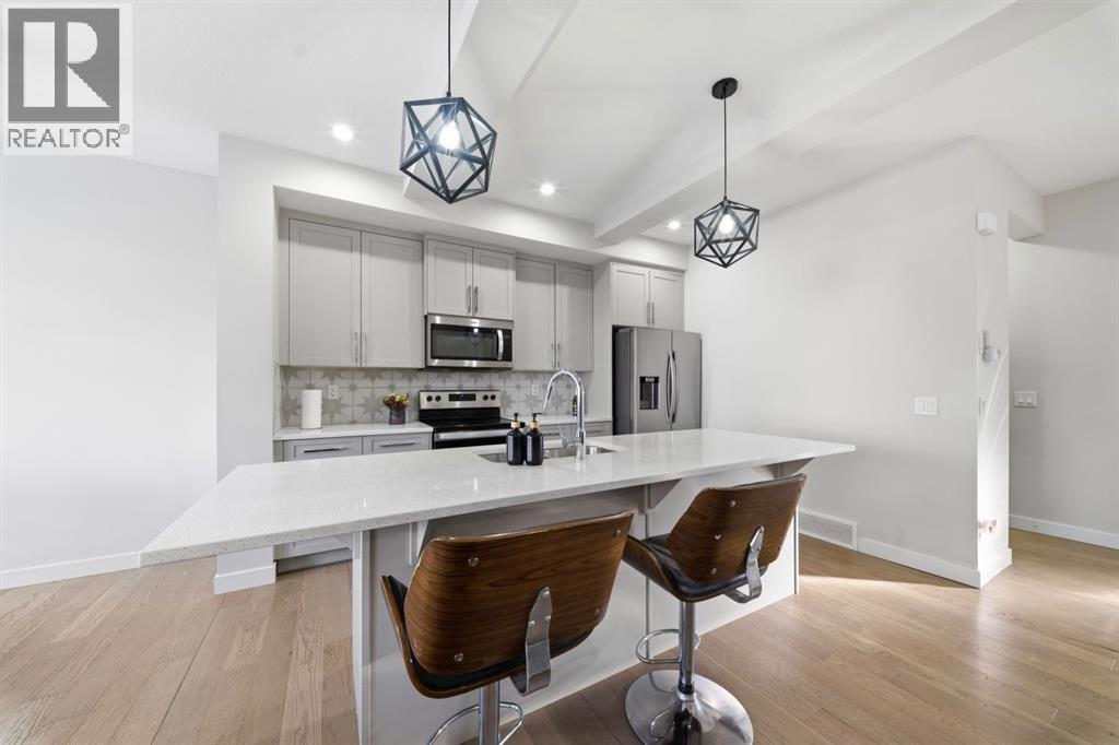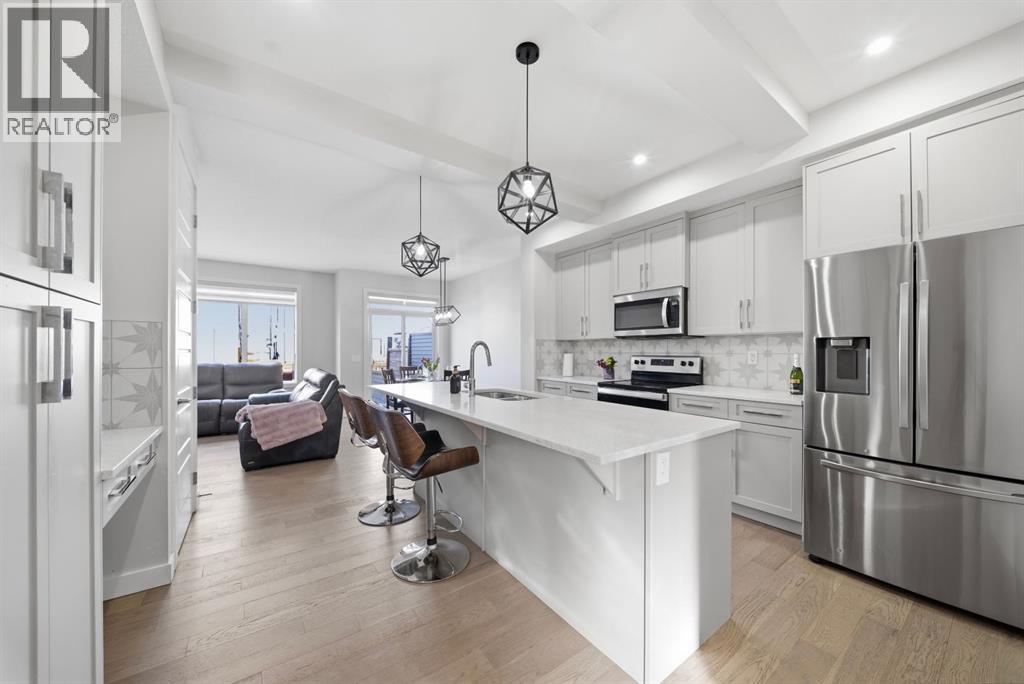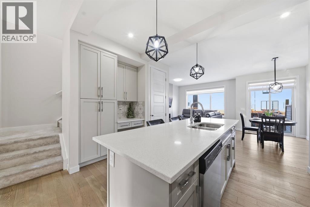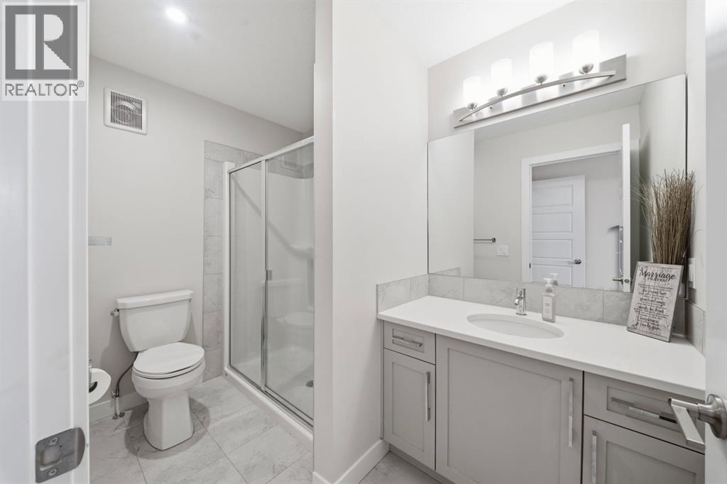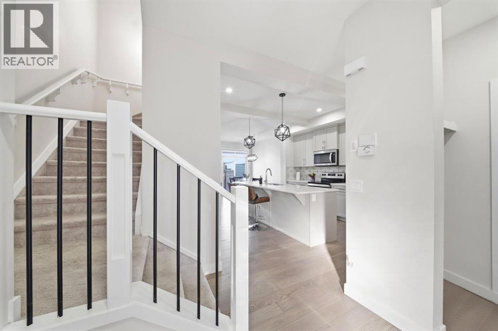 NEW PRICE!!!!! | A semi-detached Duplex feels like a House, Not Communal Living. More Privacy,Less Density. Built by Douglas Homes in 2021, this move-in ready duplex is located in the vibrant community of Creekrun in Airdrie, within the sought-after Cobblestone area, just steps from pickle-ball and tennis courts, soccer fields and green space. Offering 1410.11 sq ft of thoughtfully designed above grade living space, this home combines modern style, functionality and remaining new home warranty coverage for added peace of mind.The main floor features luxury Vinyl Plank Flooring, a bright open layout, a convenient half bath and a beautifully designed kitchen centred around a large 9 foot quartz island that comfortably seats up to six, making it the true heart of the home for everyday living and entertaining. A cozy electric fireplace, oversized windows and upgraded light fixtures add warmth and character throughout. Upstairs you will find three bedrooms including a spacious primary retreat with a walk in closet with a window and a private 3-piece ensuite. A full 4-piece bathroom and the convenience of upper floor laundry complete this level. Carpet is featured upstairs with tile flooring in the bathrooms.The unfinished side entry basement offers incredible future potential and the possibility for a legal suite (subject to city approval). Step outside to a fully fenced yard with a deck already built, a generous backyard and an attached single garage with ample storage.Additional highlights include a smart thermostat, electric range, over-the-range microwave hood fan, quartz countertops and a functional, well-planned layout throughout. There are no condo fees.The Alberta New Home Warranty began September 28, 2022 and includes five-year building envelope coverage and ten-year structural coverage.Creekrun is one of Airdrie’s newest and fastest growing communities, offering future schools, parks, pathways and quick access to shopping, Planet Fitness, No Fri lls and other everyday amenities, all within minutes. This is a rare opportunity to own a nearly new home in a growing, family friendly neighbourhood with long term value and income potential. (id:6365)