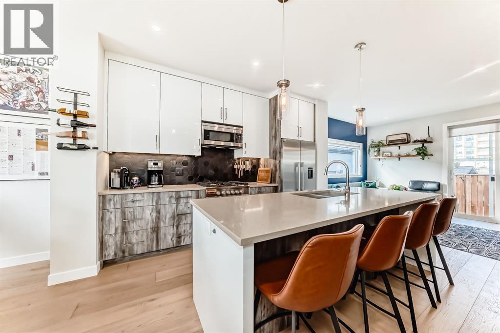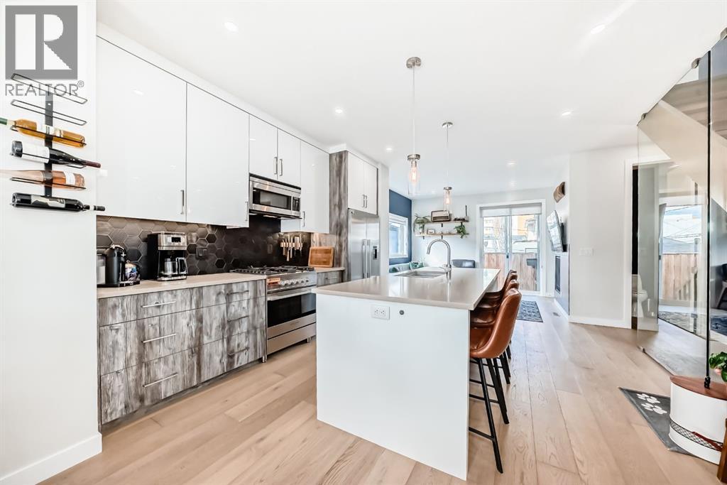 Welcome to elevated inner-city living in the highly sought-after community of Windsor Park. This stunning luxury townhouse offers 1,836 sq ft of beautifully designed living space, blending upscale finishes with functionality.Featuring 3 spacious bedrooms and 3.5 bathrooms, this home is perfect for families or professionals alike. Each full bathroom is equipped with in-floor heating, bringing an added touch of everyday comfort. The chef-inspired kitchen is outfitted with premium Fisher & Paykel appliances, sleek cabinetry, and a layout ideal for entertaining. The stunning glass wall is a true highlight The primary retreat is a true standout, showcasing vaulted ceilings that create an airy, luxurious feel. A large walk-in closet, and large ensuite bathroom featuring a double vanity and IN-FLOOR HEAT. Downstairs, the fully finished basement expands your living space with a stylish wet bar, additional bedroom, full bathroom (with in-floor heat!), storage, and a cozy lounge area—perfect for guests, relaxing evenings at home, or entertaining!Enjoy the convenience of air conditioning, a private patio complete with a natural gas line for your BBQ, and easy access just steps from your garage. With low condo fees and a pet-friendly policy, this property offers both comfort and flexibility.Ideally located just minutes from downtown and Chinook Mall. Walking distance to parks & playgrounds, BrittaniaPlaza, Stanley Park & dog parks. Come see this immaculate property yourself & experience all that Windsor Park has to offer! (id:6365)