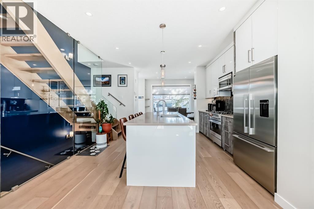 Welcome to elevated inner-city living in the highly sought-after community of Windsor Park. This stunning luxury townhouse offers 1,836 sq ft of beautifully designed living space, blending upscale finishes with functionality.Featuring 3 spacious bedrooms and 3.5 bathrooms, this home is perfect for families or professionals alike. Each full bathroom is equipped with in-floor heating, bringing an added touch of everyday comfort. The chef-inspired kitchen is outfitted with premium Fisher & Paykel appliances, sleek cabinetry, and a layout ideal for entertaining. The stunning glass wall is a true highlight The primary retreat is a true standout, showcasing vaulted ceilings that create an airy, luxurious feel. A large walk-in closet, and large ensuite bathroom featuring a double vanity and IN-FLOOR HEAT. Downstairs, the fully finished basement expands your living space with a stylish wet bar, additional bedroom, full bathroom (with in-floor heat!), storage, and a cozy lounge area—perfect for guests, relaxing evenings at home, or entertaining!Enjoy the convenience of air conditioning, a private patio complete with a natural gas line for your BBQ, and easy access just steps from your garage. With low condo fees and a pet-friendly policy, this property offers both comfort and flexibility.Ideally located just minutes from downtown and Chinook Mall. Walking distance to parks & playgrounds, BrittaniaPlaza, Stanley Park & dog parks. Come see this immaculate property yourself & experience all that Windsor Park has to offer! (id:6365)